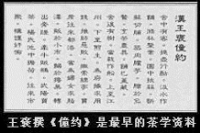 公元前一世纪的西汉时期,我国开始将茶作为饮料,并进行栽培。三国时期,在江南一带饮茶已成习惯。当时名医华佗曾说:“苦茶久食,益意思”。西汉以将茶的产地县命名为“荼陵”,即湖南的茶陵。西汉·王褒《僮约》(见图1-4)“烹荼尽具”、“武阳买荼”,经考该荼即今茶,说明西汉时不仅饮茶成风,而且出现了专门茶具。到三国魏代《广雅》中已最早记载了饼茶的制法和饮用:“荆巴间采叶作饼,叶老者饼成,以米膏出之”。茶以物质形式出现渗透至其他人文科学而形成茶文化。最早喜好饮茶的多是文人雅士,司马相如所作《凡将篇》、杨雄所作《方言》,一个从药用角度,一个从文学角度都谈到了茶。又如汉代《赵飞燕别传》中,有一节关于饮茶的记载,汉帝崩。太后遣人理昭仪且急,穷帝得急之端,昭仪及自缢。后居东宫,久失御。一夕后寝,惊啼甚久,侍者呼问,方觉,乃言曰:适吾梦中见帝,帝自云中赐吾坐,帝命进茶。左右奏帝,后向日待不谨,不合啜此茶。”这就说明在当时,茶已成为皇室中的一种饮料了。魏晋南北朝时,已用茶来款待客人,而且出现了有关茶的文学作品,如晋杜育的《香茗赋》等。