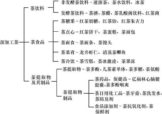 深加工茶是以茶树鲜叶、初加工茶或再加工茶为原料,经特定工艺加工,原料发生显著变化,不再看见明显茶叶形态的茶产品(图4-10)。