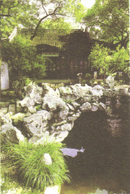 During the Anti-Japanese War, Zuibaichi was occupied by the Japanese invaders. The houses and pavilions in the garden were dismantled and changed into Japanese-style houses; worst of all, even a notorious comfort hall was set up in the garden. In 1956, the garden underwent a complete renovation and expansion westward with an additional 60 mu of land. The original site of the garden is in the east of the present park, which concentrates the best scenery. With the pond as the center, quite a number of exquisite and elegant halls, houses and pavilions with a long corridor were built around. Covering only one mu, the pond with fishes swimming in the clear and green waters is encircled with a bank of yellow stones. The Hall on the Pond, located on the north bank, was reconstructed in the 1st year (1909) during the reign of Emperor Xuantong. The horizontal board in the hall bears the inscription, Zui Bai Ci, by Cheng Shifa, a distinguished contemporary calligrapher and painter. The eight chairs of the Ming-Dynasty style in the hall are really rare for the gardens in this region. In front of the hall are towering trees, providing the building with a shade; in the rear is a cluster of osmanthus trees; outside the north window is a stretch of bamboos; and the pond water ripples underneath the house. On the east of the hall is another hall, the Zhujiashan Hall, with windows on all four sides; thus, it is called the Four-sided Hall. It is of the Ming-Dynasty style and it has an old camphor tree in its front. The tree is more than 300 years old, yet still so vigorously exuberant that its branches and leaves form a nice shade. Behind the hall, old vines cling to trees, producing a sense of old times. At the end of the Ming Dynasty, this hall used to be the place where the artists gathered, drinking wine and producing art works with their brushes. On the southeast of the hall there is a cluster of 100-year-old peonies, which are still thriving. And on the left of the hall are several 100-year-old glossy privet trees. The pavilions around the pond have elegant structures and fine carvings. The Large Pavilion on the southeast, the Small Pavilion on the northeast, and the Hexagonal Pavilion on the west are linked with each other by a long corridor. Sitting on the stool by the railing and watching the fishes swimming in the water, you could also enjoy the reflection of the houses, pavilions, and trees in it. On the south bank of the pond is a curved corridor. On the west of the Hall on the Pond is the Snow Hall, with a wall between them. This hall is so named because of the masses of plum blossoms. In the yard is a pool, which is rich in fragrant lotus flowers in summer time. On December 26, 1912, Dr. Sun Yatsen delivered a speech here. Right in front of this hall are two 2-meter-tall stone lions, which are the remains from the Ming Dynasty. On the east of the Four-sided Hall is the Baocheng Building, which is the dwelling place of the owners.
