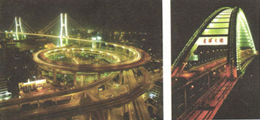 1.Day Cruise on the Huangpu River. The cruise boat starts from the dock at the Bund and sails northward. The scenic spots along the river are as follows: 1) The World Architectural Exposition in Puxi and the Gallery of World Buildings in Pudong that enhance each other's beauty; 2) The hundred-year-old Waibaidu Bridge is also referred by the locals as the granny bridge. It is located at where the Suzhou Creek joins the Huangpu River. Next to the bridge is the Shanghai Mansion, a landmark in Shanghai; 3) The overwhelming Yangpu Bridge, which connects the two banks of the river, making a thoroughfare above the waters; 4) The Gongqing Forest Park in Puxi, which is very rich in green trees and grass; 5) Zhanghuabang Harbor District along the west bank, the largest and world-class container port, where dozens of huge portal jib cranes are arrayed along the river; 6) The ancient Wusong Town, which has rows upon rows of tall buildings now; 7) The Wusong Mouth, where the waters of the Huangpu River flow into the Changjiang River, with a 45-meter-tall two-story signal building, as well as a tidal clock to measure the depth of water; 8) The ruins of the Wusong West Battery on the west bank, and the East Battery that has long been submerged in the Changjiang River. Along the Changjiang River is a Marsh Forest Park. On the east bank is Shanghai Riverside Forest Park, covering an area of over 1,800 mu. Because of its favorable geographical location by the Changjiang River as well as its excellent ecological environment, it has already become a paradise for birds even within less than two years since its set-up. So far, 102 precious species of birds have been found; therefore, it is a forest park with the largest variety of wild birds in Shanghai. On summer nights fireflies give off flashes and frogs croak everywhere. During the daytime, the pecking by the woodpeckers can be heard. In August 2007, the park was awarded the prize and trophy by IFLA. 9) The famous miraculous view of Three Kinds of Water at the mouth of the Changjiang River, where the water and the sky merge into one. There are two explanations for the so-called Three Kinds of Water: (1) Three streams, the grayish waters of the Huangpu River, the muddy waters of the Huangpu River because of the mud and sand from the Changjiang River and the blue waters of the Changjiang River, join here with very clear demarcation lines in between; (2) The grayish waters of the Huangpu River, the bluish gray waters of the Changjiang River and the blue waters of East China Sea merge here. The latter is more popular.