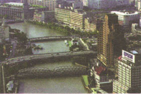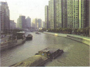 On both banks along the Suzhou Creek, the old buildings were leveled and replaced with high-risers, high and low, grand and imposing. Green trees and colorful ground bricks make up really beautiful scenery. By the Suzhou Creek, more than 30 residential quarters with water views have been erected. Before liberation, this part of the city used to be the notorious slum area, dirty and shabby, which has been eradicated. In addition to many tall buildings, there are also parks with ponds and islands, trees and flowers, bridges and fishes. You might chance upon dragon boat races on the Suzhou Creek. In the old days, modern romantic art workshops were already being set up in this area. Taking a walk in this area, you are likely to get acquainted with water culture, bridge culture, modern architectural culture, modern housing culture, as well as a great many anecdotes. And you could also share the happiness in the realization of the dream that the Suzhou Creek would become clean and clear!
