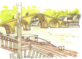 Taian Bridge, built in the 12th year (1584) of the Wanli Period of the Ming Dynasty and about 4.2 m high, is a single arch bridge of gray stones. It bears the architectural features of the Yuan Dynasty and is the steepest bridge in the town.