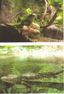 Shanghai Oceanarium consists of two buildings, the main and the attached. The main building is large in size, altogether five stories, two underground and three aboveground. The escalator in the lobby can take visitors straight to the first exhibition section on the third floor. Right in front, the 40-meter artificial waterfalls are pouring down torrentially, very imposing and spectacular. Fresh-water aquatic animals and fishes are swimming in the exhibition pond around the waterfalls. These are the animals on the verge of becoming extinct, from China, Australia, South America, etc., such as Chinese alligators, Chinese sturgeons, tree frogs, giant salamanders, and other rare species. The colorful rainbow fish give the visitors a sense of mystery, especially with artistic effects produced by the optical and acoustic facilities in the surroundings.