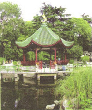 In the south of Dingxiang Garden, there is a flower garden. Among the buildings meanders an over-100-m dragon wall, with 18 ups and downs. Behind the gate, referred to as the Dragon Gate, is a path laid with pebbles. In the garden there is a lake with a zigzag bridge, and a pavilion at the center of the lake. With a phoenix at the top of the pavilion, it is thus called Phoenix Pavilion. By the side of the lake there is a stone boat. With green trees, flowerbeds, and rockeries, it is an early garden that integrated the Chinese and western styles.