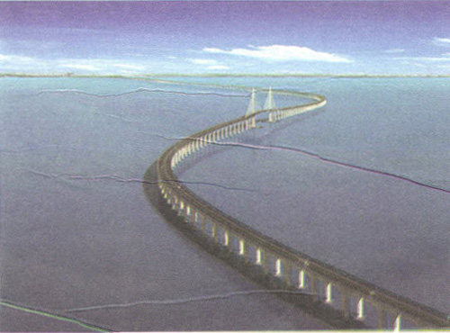 Lingang New Town is locacted by the coast of East China Sea. It's at the intersection of the Mouth of the Changjiang River and the Hangzhou Bay, 50 km away from the city center. It is planned to cover an area of 300 km2. Donghai Bridge integrates Yangshan Deep-water Port and Lingang New Town. Lingang New Town will be an important satellite town of Shanghai in the future, strategically located for the economic development of Shanghai moving eastward.