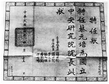 1928年,蔡元培61岁,1月,兼任交通大学校长。4月,根据蔡元培先生等提议,国民党中央会议决议,设立中央研究院,任命蔡元培为院长。11月被任命为故宫博物院理事,后被推为理事长。