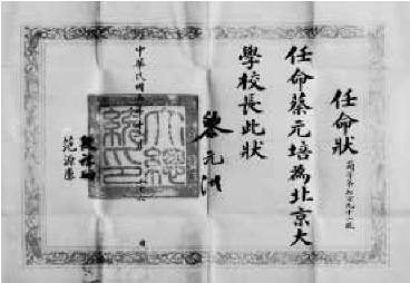 2002年5月1日,位于沙滩的北大红楼作为新文化运动纪念馆正式对外开放。蔡元培的女儿蔡睟盎专程自上海前来北京,向纪念馆捐赠了几件珍贵的文物,其中之一,是1916年12月26日由大总统黎元洪签署的蔡元培就任北京大学校长的“任命状”。
