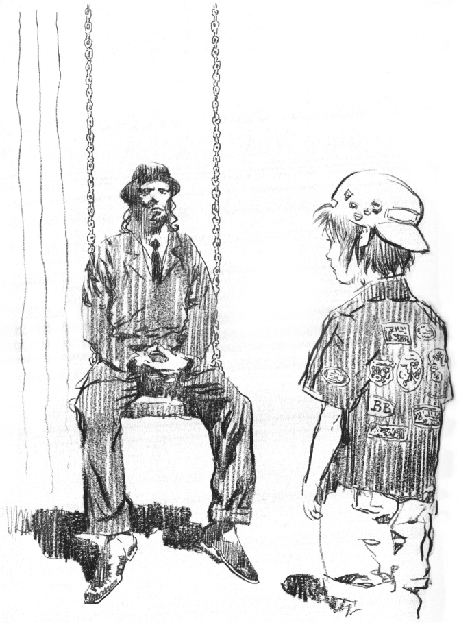 我第一次见到伯爵,是在小学附近的一个小公园里。那时候还没有放暑假。一个穿着一身黑衣服的大人坐在公园的秋千上。我每天都会抄近道,穿过这个公园回家。那天我正好从秋千前面经过。