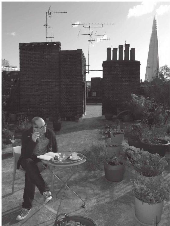 然而,我们还有一个更巨大的材料馆,里头收藏了数百万种材料,这是已知最大的材料馆,而且收藏数量一直呈指数增长:那就是人造物的世界。请看本页的照片。这是我在我家屋顶喝茶的照片。这张照片非常普通,但如果仔细观察,就会发现它像一份型录,列出了建构我们整个文明世界的各种材料。这些材料很重要。拿掉混凝土、玻璃、织物、金属和其余材料,我就只能光溜溜地飘在空中发抖。我们或许自认为文明,但文明绝大多数得归功于丰饶的物质。少了物质材料,我们可能很快就得和其他动物一样为了生存而搏斗。因此从这个角度看,是衣服、住宅、城市和各式各样的“东西”让我们成为人(只要去过灾区就知道我在说什么),而我们用习俗和语言让它们具有生命。因此,材料世界不仅是人类科技与文化的展现,更是人类的一部分。我们发明材料、制造材料,而材料让我们成为我们。