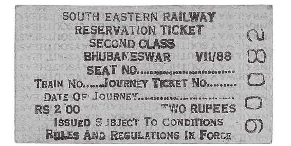 我搭火车去布巴内斯瓦时买的火车票。我1989年到印度旅行,同行的有艾玛•威斯雷克和杰奇•希斯