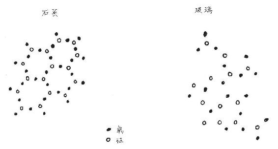 硅石(石英)的规则结晶构造和玻璃的不规则构造比较图