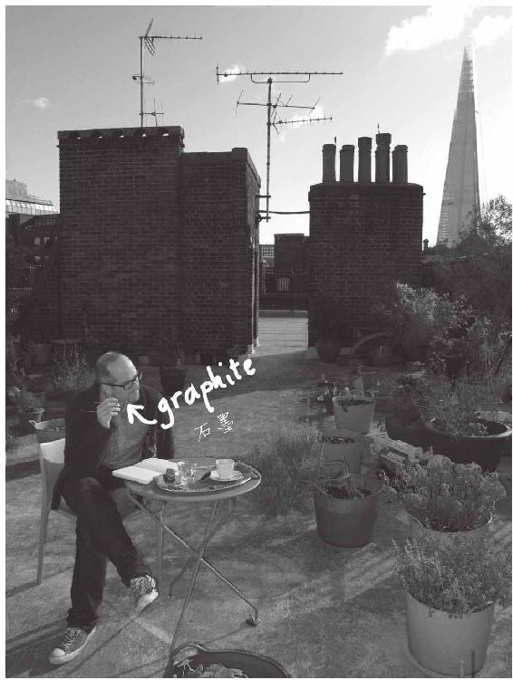 巴灵顿先生说:“我把原子从铅笔转到了纸上。”说完开始大谈石墨炭笔多么适合当成艺术表现的工具。“重点是,”他说,“虽然我们的文化推崇钻石为最高阶的碳,其实它根本无法做出深刻的表现。钻石跟石墨不同,钻石从来不曾创造出好的艺术。”我不难想象他对艺术家达米恩•赫斯特价值五千万英镑的镶钻骷髅头作品“献给上帝之爱”会给出什么评价。