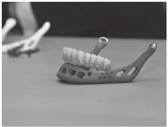 3D打印应该会在人工器官制造技术上扮演重要角色。目前3D打印已经广泛用于制造植牙,并于2012年为一位83岁的老妇人制作了一副人工下颚。虽然这副颚骨由钛制成,不过打印支架材料再植入细胞,让细胞长成病人自己的骨骼,很快就会变为可能。