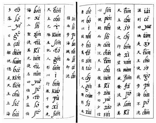 在肇庆安顿好住所之后,利玛窦和罗明坚以高薪聘请了一位有声望的中国学者(福建籍的秀才)住在教堂里做他们的中文家庭教师(2),继续研究和学习中国的语言、书法。为了帮助自己以及来华的耶稣会士学习中国语言,利玛窦和罗明坚两人合作编写了一本《葡汉字典》,全书共189页,用拉丁字母拼音的方法注释汉字读音。这对西方人学习中国语言甚至汉语的拼音化,都有非常重要的意义。经过多年的刻苦学习(包括在澳门和韶州的学习),利玛窦掌握进而精通了中国的语言文字,达到了“勤学明理,著述有称”的程度。