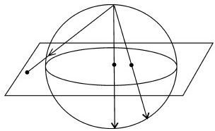 球极投影是起源于古希腊天文学研究的一种数学方法。这种方法的创始人不详,据说是托勒密或是欧多克斯(Eudoxus,前408—前347年)。这种方法的原理是假设球体是透明的,而光线也是沿直线前进的。然后在球的南极(或北极)放置一个投影点,在赤道放置一个平面,让光源向平面发光,这样就可以在平面上看到除南极点之外球面上所有点的投影了。