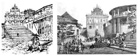 根据目前已知的文字记载,元成宗大德三年(1299年)及元成宗大德九年(1305年),欧洲西式教堂建筑第一次出现在中国的京城“汗八里”(37)(由13世纪末罗马教宗派来的约翰孟德高维奴传教士建造,他先后在北京城内修建了两所西式教堂)。1555年至1569年间,天主教会先后在澳门建造了3座有名气的教堂:圣保禄教堂(俗称大三巴寺,1563年建造)、圣安多尼堂(1565年初建)和圣望德堂(1569年建造)(38)。