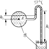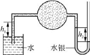 2-5 如图2-19所示,在盛有空气的球形密封容器上联有两根玻璃管,一根与水杯相通,另一根装有水银,若h 1=0.3 m,求h 2为多少?