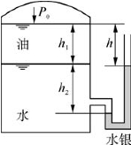 2-8 一封闭容器内盛有油和水,如图2-22所示,ρ油=890 kg/m3,h 1=0.3 m,h 2=0.5 m,h= 0.4 m,试求油面上的表压强。