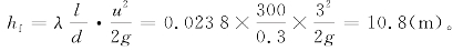 例4-1 在管径d=300 mm,相对粗糙度ε/d=0.002的工业管道内,运动黏滞系数ν=1×10-6 m2/s,ρ=999.23 kg/m3的水以u=3 m/s的速度运动。试求:管长l=300 m的管道内的沿程水头损失。