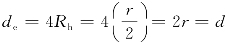 在非圆断面的管道或渠道的水力计算中,将引入当量直径的概念,当量直径(equivalent diameter)d e定义为四倍的水力半径(R h),即