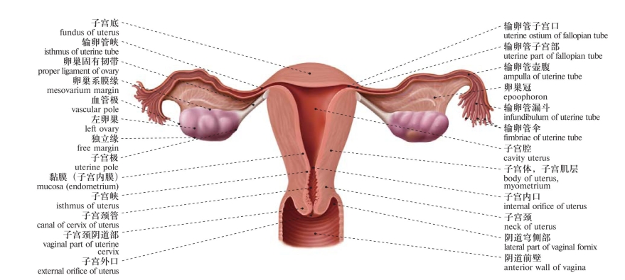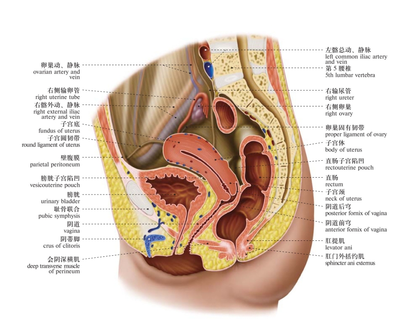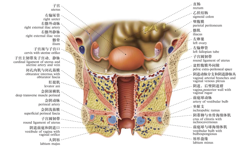 Peritoneum,fasciae, and connective-tissue spaces around the uterus and vagina (coronal aspect)
