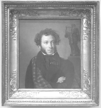 普希金虽然只活到37岁,但无论生前还是身后,有关他的传闻从来就没有间断过。这没办法,谁让他聪明无比,还长相漂亮呢。大文豪屠格涅夫说:“普希金的脸黝黑但不大,有一张非洲人那样的厚嘴唇,还有一口大白牙。”他不仅在200年前是一个有独特气质的美男子,今天的俄罗斯姑娘也喜欢有这样外表的男人,因为当代俄罗斯人以“黑”为美。在莫斯科市中心的特列季亚科夫画廊里有一幅普希金的画像:黑色的西装,夸张的领花上的脸瘦削红润,一头卷曲自然的棕色短发,连同满脸的络腮胡子也一样卷曲着,目光犀利有神地看向远方,肩上斜搭了一件苏格兰风情的红格呢子围巾。这幅画像是普希金的经典画像,在俄罗斯小学的课本里的关于普希金的插图就用的这幅画。从画像中就可以看出来,普希金不是一个纯正的斯拉夫人。