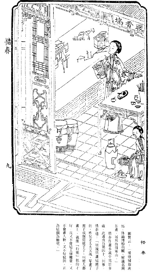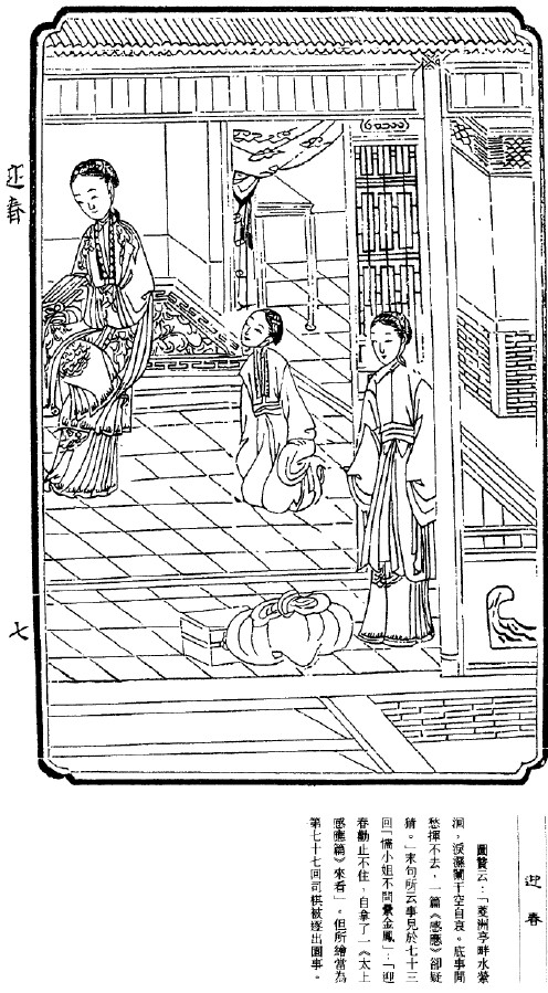 乾隆五十六年萃文书屋活字本之《新撰全部绣像红楼梦》,是第一次以“红楼梦”作为书名刊行小说,其插图也就成为最早的红楼画。
