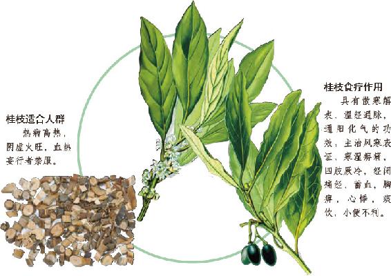 肉桂和桂枝虽同属于肉桂树的产物,但由于各自的药用部位不同,其性味功能主治与临床应用也不尽相同。肉桂是指将其树皮去除最外层栓皮后的树干皮;而桂枝则仅取其带木质心的嫩枝。肉桂性热,宜用于治阳衰与里寒重症。而桂枝性温,治阳衰与里寒轻症宜用。
