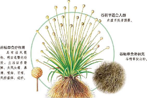 [颂说]谷精草处处都有。春生于谷田中,叶茎俱青,根花并白色。[时珍说]此草收谷后,荒田中生,江湖南北多有。丛生,叶似嫩谷身。抽细茎,高四五寸,茎头有小白花,点点如乱星。九月采花,阴干。[时珍说]谷精体轻性浮,能上行阳明分野。凡治目中诸病,须加用。明目退翳之功,似在菊花之上。