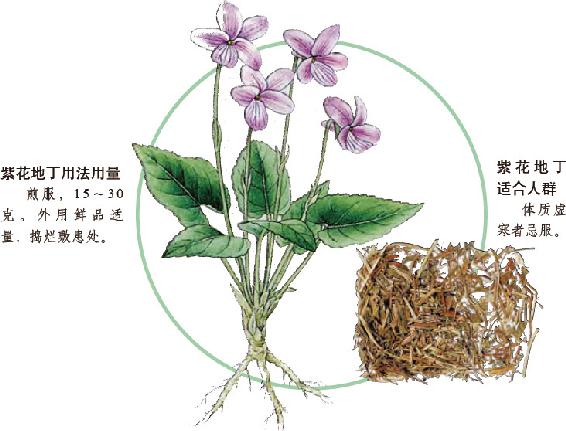 紫花地丁、蒲公英、败酱草各30克。将上述原料煎汁去渣,加糖少许代茶饮。本食疗方清热解毒,抗菌消炎。有抑制艾滋病毒的作用。