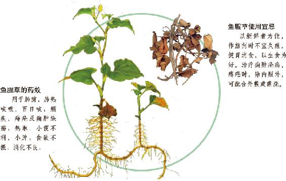 相传很久以前,有对不孝夫妻时常虐待双目失明的老母亲。一次老人患了重病,夫妻俩不但不给她治病,还把邻居送给老人补身子的鱼偷吃了。他俩采来有鱼腥味的野菜,煮了骗母亲说是鱼汤。母亲信以为真,喝了以后,病奇迹般地好了。后来这事传了出来,这种野菜的药性也被大家认可,也由此唤其为鱼腥草。在我国传统医学中具有较为广泛的应用。