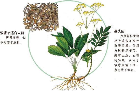 据本草记载,败酱科植物应为败酱草正品,但在北方地区习惯将菊科植物苣荬菜(北败酱)的带根全草作为本品使用;在南方地区习惯将十字花科植物(苏败酱)的带果全草作为败酱草使用。“此草有陈腐气,故以败酱得名”。