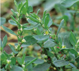 形态:一年生草本,常有白粉;茎丛生,匍匐或斜生,绿色,有沟纹,叶经生,叶片线形至披针形,花簇生叶腋,瘦果卵形,表面有棱,褐色或黑色。