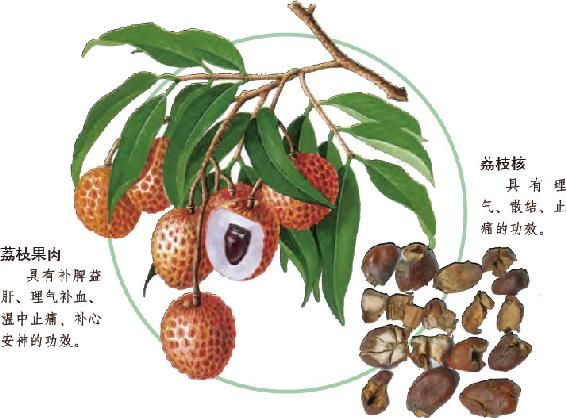 荔枝肉5枚,煮酒1杯服用,屡服有效。