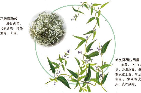 鲜鸡矢藤根或茎叶50~100克。水煎服。