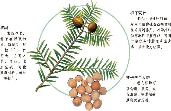 榧子一百枚,去皮后炒熟吃。胃弱的人用量减半。