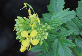 形态:一年或二年生草本。叶片宽大,倒卵形。总状花序顶生;花冠黄色,长方卵形。长角果广线形,种子圆形,淡黄白色。