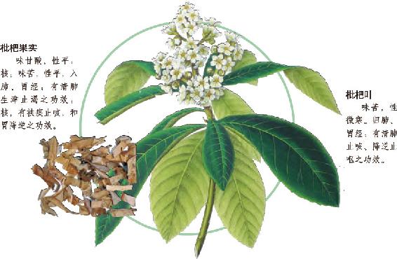 枇杷叶3克,菊花3克,杏仁9克,蜂蜜少许。先将枇杷叶稍作冲洗,再将菊花、杏仁放入500毫升热水中,盖杯闷10分钟后,去渣加入蜂蜜。本食疗方对于长期使用喉咙,或整天待在冷气房里,口干舌燥、或肺部、支气管较强者都适用,或因抽烟而造成喉咙生痰者,饮用此茶会有不错的疗效。