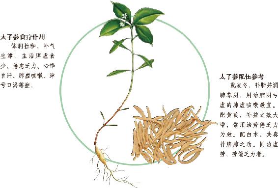 太子参又叫孩儿参、童参。光听这些名字,就连不少天天在处方中与这味药材打交道的医生都会想当然地认为那肯定是对幼小人参的称谓。在古代,的确有不少医书把“人参之细小者”称作太子参。可在后来,人们发现了一种具有某些功效类似的人参,但又远逊人参的石竹科植物。太子参的名号于是便“旧瓶装新酒”,让给了这种新兴的药材。