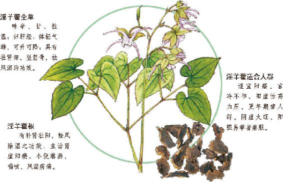 淫羊藿能促进精液分泌、降血糖;有提高肾上腺皮质系统功能的作用,并能促进抗体形成。凡肾阳不足,阳痿不举,梦泄劲遗精乾,可与菟丝子、巴戟天、肉桂等配伍;凡肝肾志虚腰膝酸办乾,可与杜仲、川狗脊等同用,以补肾强腰。