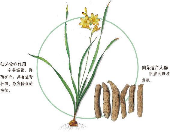 仙茅20克,大虾250克,生姜2片,盐少许。仙茅用清水洗干净。大虾用清水洗干净去壳,挑去虾肠。生姜切末。把以上原料一起放入瓦煲内,加水适量,中火煲1小时,加入盐少许即成。本食疗方主治肾虚阳痿、精神不振、腰膝酸软等症。