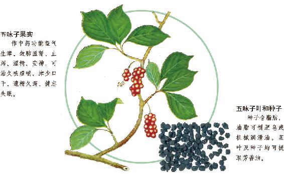 五味子,顾名思义是一种具有辛、甘、酸、苦、咸五种药性的果实,在一般只带有一两种药味的中药材当中,实属独特。这种五味俱全、五行相生的果实,能对人体五脏——心、肝、脾、肺、肾发挥平衡作用。在韩国一些地区的餐桌上少不了两件宝,一是泡菜,而另一个就是五味子。