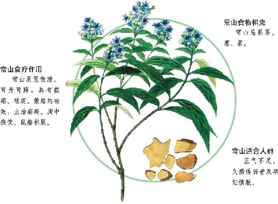 常山为虎耳草科植物常山的根。若疟疾痰盛者,可与槟榔、草、陈皮、厚朴等配伍。凡胸中痰饮上逆,头痛寒热不食者,可与甘草煎汤和蜜服。又可用于疟母、鼠瘘、瘿瘤、积聚等证,常与鳖甲、牡蛎、穿山甲、桃仁等配伍,以增散结消积之功。