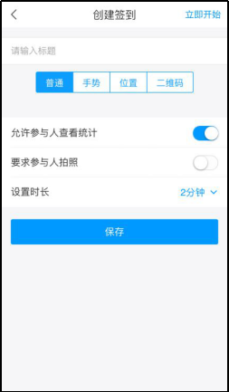 普通签到,学生收到签到任务后直接点击完成签到(普通签到中可以设置“要求参与人拍照”条件);