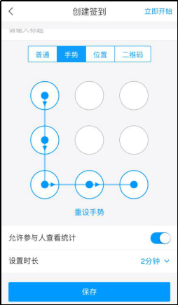 手势签到,学生在学习通上收到签到任务后,画出与教师设置相同的手势完成签到;
