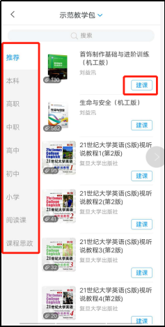 注:示范教学包目前仅支持手机端建课,建课后可登录pc端查看并编辑课程。