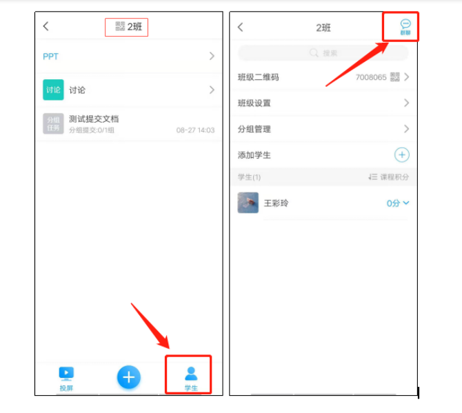 课堂发布的“签到”、“抢答”等活动都可以在群聊中找到。