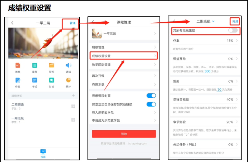 操作位置:进入课程管理——成绩权重管理——设置权重并保存。(如图)