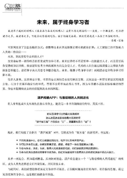 欢迎和感谢手捧此卷的读者花费宝贵的时间,来与我们一起解读和展望自己的职业生涯之路,希望这本书能为你们带来有意义的启示和帮助。我也要感谢王旭泉老师和出版社的编辑为本书做出的贡献。