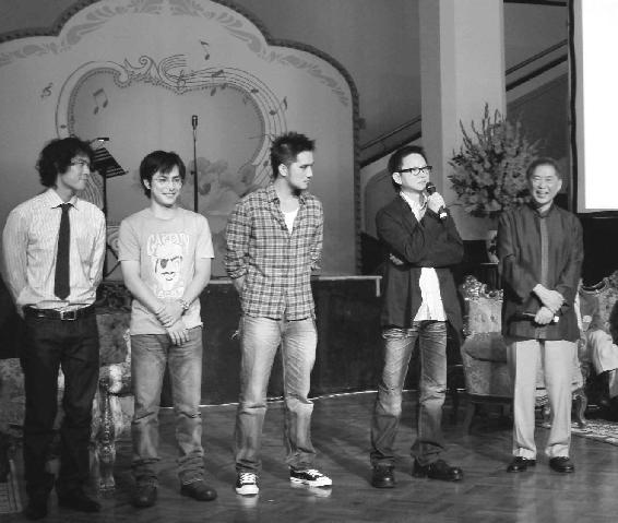 《孽子》导演曹瑞原(右二)率领该剧演员参加舞会,左起:杨佑宁、范植伟、马志翔